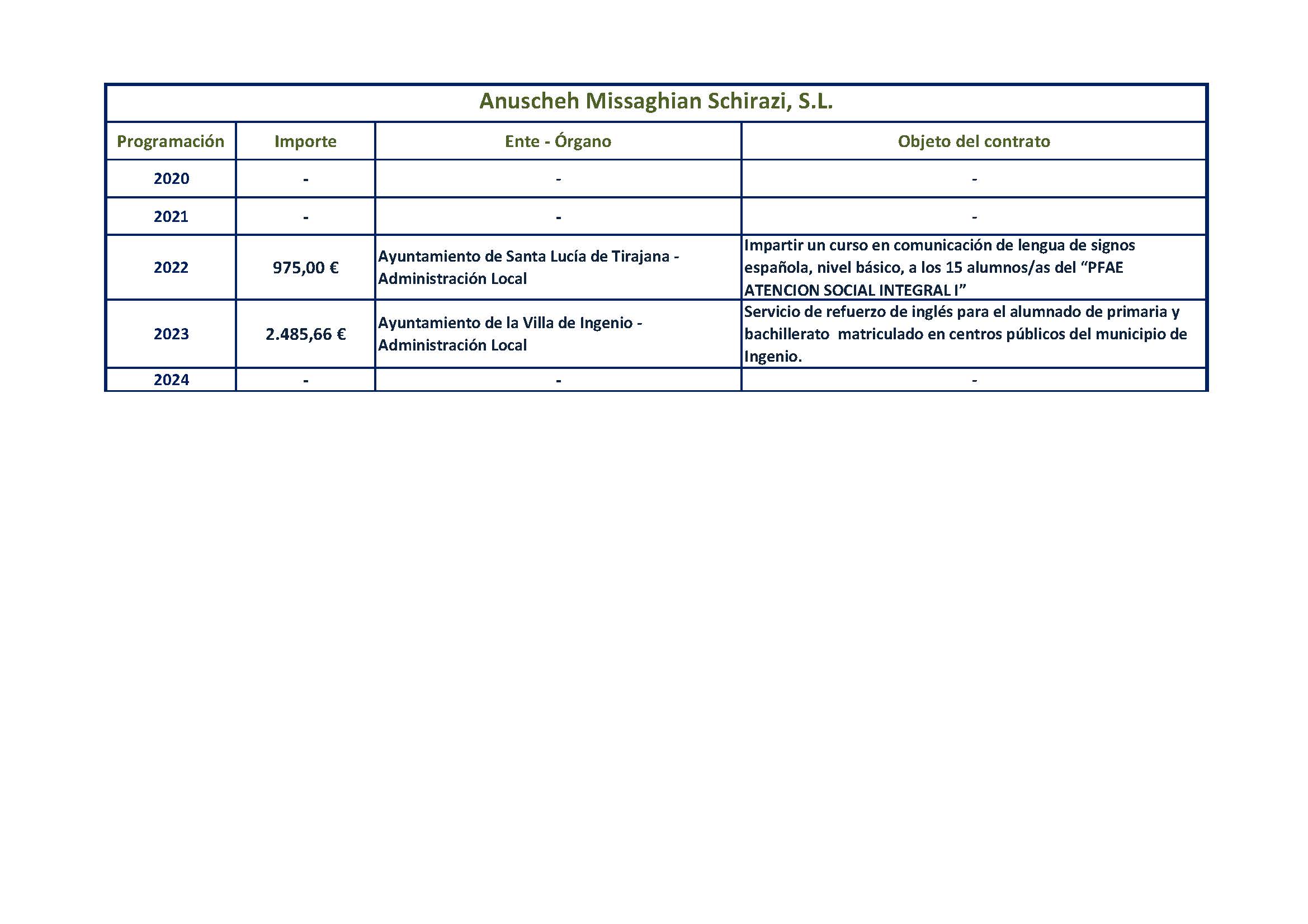 Los años 2019, 2020, 2021 y 2024 no se han suscrito contratos con la Administración Pública.