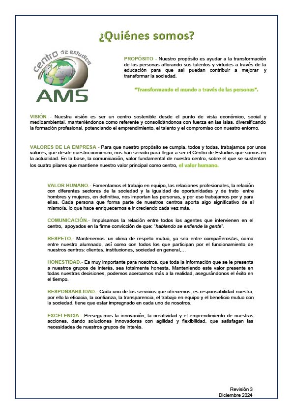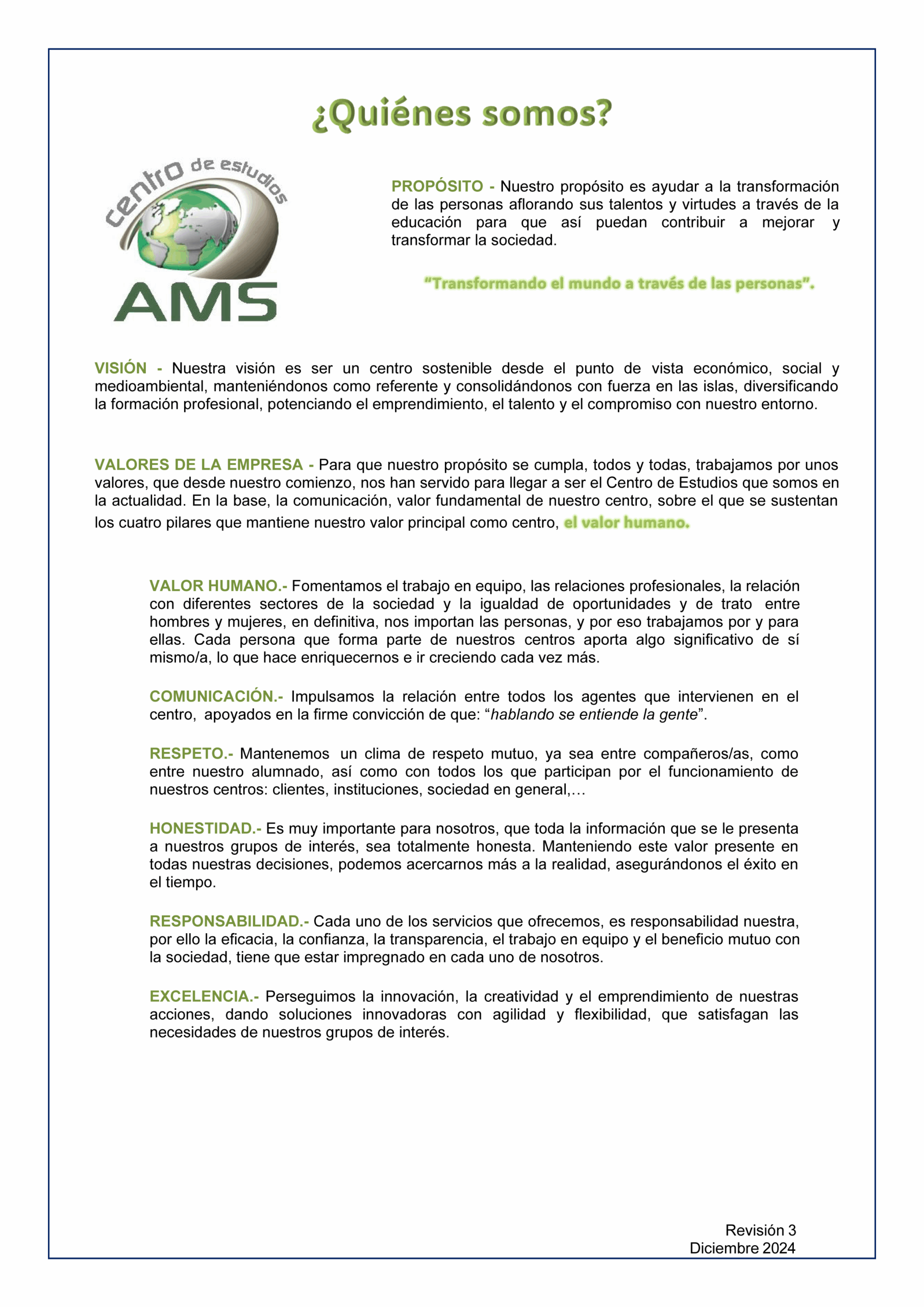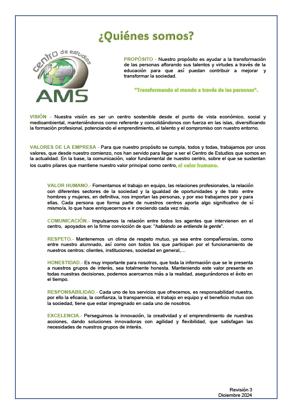 Anuscheh Missaghian Schirazi SL brinda una amplia gama de cursos adaptados a las necesidades de la sociedad y del mercado laboral, para favorecer la cualificación y capacitación de trabajadores y trabajadoras que desean crecer profesionalmente a través de nuestra oferta formativa subvencionada y privada.